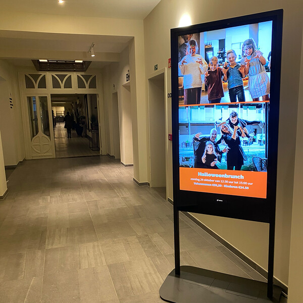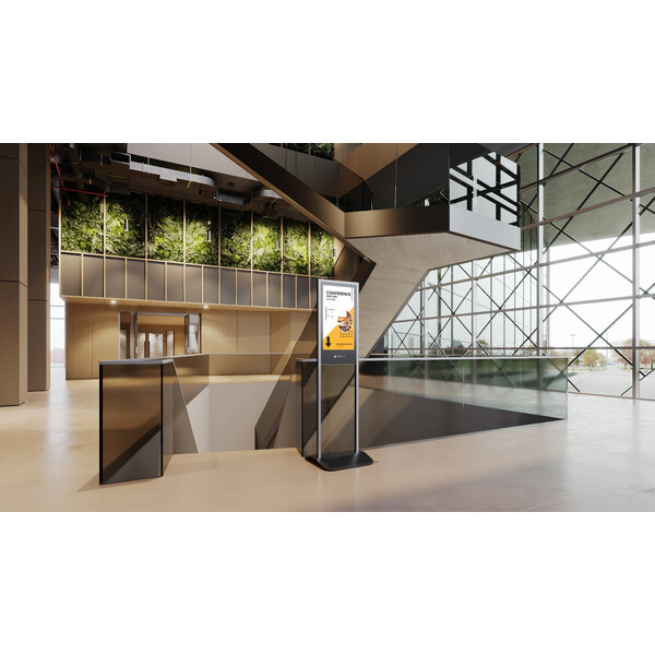 - Възможност за персонализиране на цвета на рамката и добавяне на лого. Интегрирайте безпроблемно дигитална табела Arcadia 55" във вашата корпоративна среда без да нарушавате бизнес дизайна. Персонализирайте цвета на рамката на тотема и добавете Вашето лого.