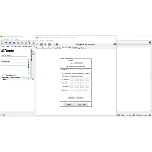 | Input section | 26dB PAD, Input gain, Phantom, Analog/ Dante switch | |