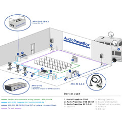 Audio Press Box APB-008 SB-EX трябва да се захранва с APB-Drive устройство, за да функционира правилно: AudioPressBoxAPB-D100, AudioPressBoxAPB-D100 R, AudioPressBoxAPB-D116 RD, AudioPressBoxAPB-D200 R, AudioPressBoxAPB-D200 RD, AudioPressBoxAPB-D216 RD, AudioPressBoxAPB-208 R, AudioPressBoxAPB-400 R.