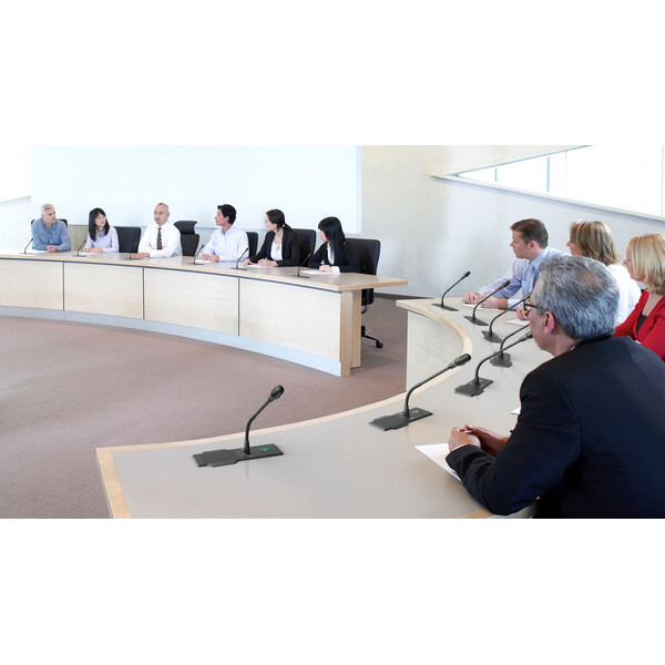 - Възможност за създаване на 4 позиции за участници със споделени микрофони и високоговорители