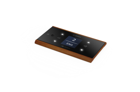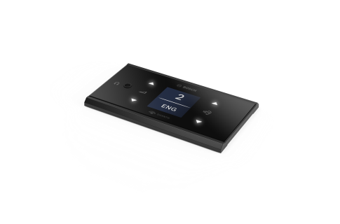 Наличните езици се визуализират на панела. За улесняване на избора на език, ако в системата е зададен предпочитан език за участника, селекторът на език автоматично използва зададения език. Силата на звука може да се регулира и чрез осветените сензорни бутони.