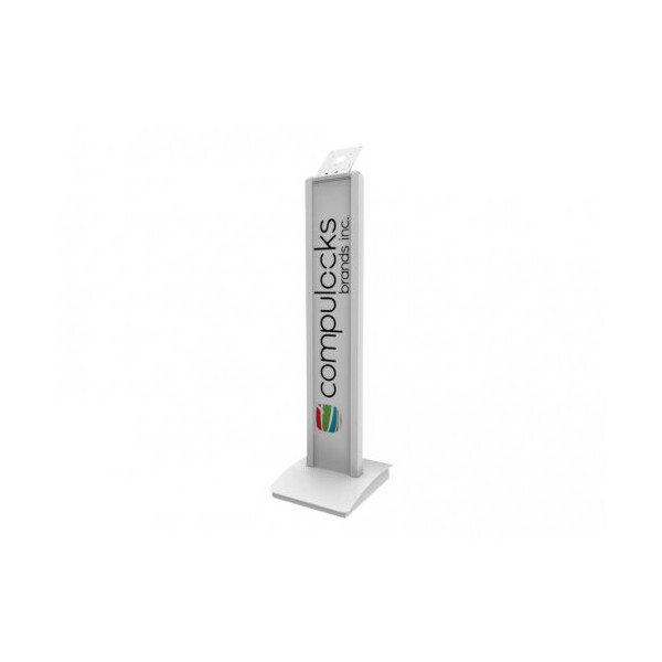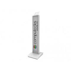 Професионална визия. Тази подова стойка Maclocks by Compulocks е проектирана за среди, където първото впечатление е от решаващо значение. Тя съчетава функционалността на универсалния VESA монтаж с възможността за цялостна визуална персонализация. Големият преден панел служи като платно за Вашето лого или корпоративни цветове, позволявайки на стойката да се впише перфектно в корпоративния интериор или маркетинговата кампания.