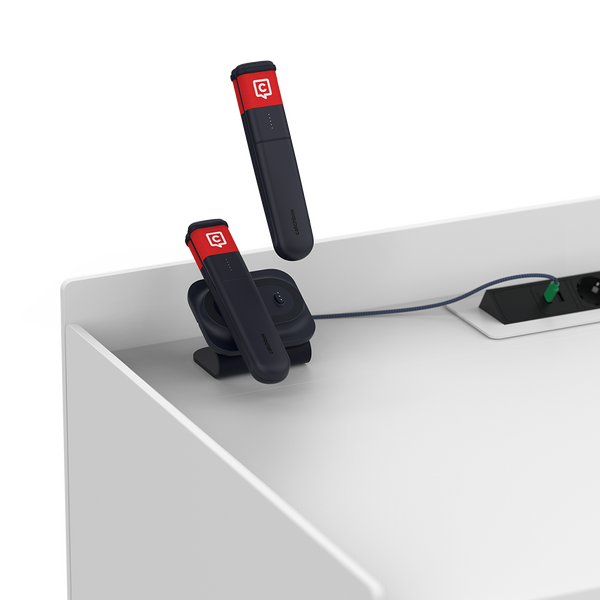 Безжично зареждане на батериите - не е необходимо да изваждате капсулата на Catchbox микрофона, за да заредите батериите. Просто поставете Catchbox върху безжичната станция за зареждане по време на почивките на събитието. Това гарантира, че Catchbox Cube винаги се захранва с достатъчно мощност. Като алтернатива вградената батерия може да се зарежда по всяко време по конвенционалния начин с помощта на USB-C кабел. Микрофоните Catchbox Clip и Catchbox Stick са готови за употреба веднага след като бъдат извадени от безжичната станция за зареждане.