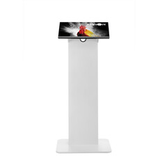 Дигитален тотем Vis-it Tilt 24 за вътрешна инсталация в пейзажна ориентация е комплект от произведената в Германия стойка Hagor vis-it Tilt White и професионален сензорен дисплей Samsung QB24C-T. Крайният продукт е надежден и функционален дигитален тотем. Дигитален тотем Vis-it Tilt 24 е подходящ за инсталация в търговски обекти, магазини, търговски центрове, рецепция, лоби, коридори и зали, конферентни центрове, входна зона, зона за информация. Тотемът има възможност да визуализира рекламни съобщения и информация за посетители и клиенти. Дигитален тотем Vis-it Tilt 24 разполага със закючващо се пространство за съхранение на мини компютър, плейър или друго AV оборудване. Дигитален тотем Vis-it Tilt 24 има възможност за наклон на дисплея от 0 до 90°.Размерите са: Ш 500 x Д 400 мм, а височината е приблизително 1062 мм, което не само е в оптимален ъгъл на видимост, но и прави тотемът идеален за всякакъв вид сензорни приложения. Кабелите са прокарани вътре в тотема, което предлага и достатъчно място за периферни устройства на различни нива. Свалящият се капак на колоната на гърба позволява оптимален достъп за обслужване по всяко време. Повърхността на тотема е защитена от удар и надраскване и се предлага в черен и бял цвят. Възможно е като допълнително платена опция, стойката да бъде боядисана в други RAL цветове.