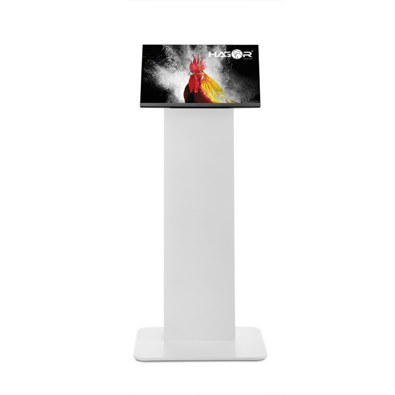 Дигитален тотем Vis-it Tilt 43 за вътрешна инсталация в пейзажна ориентация е комплект от произведената в Германия стойка Hagor vis-it Tilt White и професионален дисплей Samsung QM43C. Крайният продукт е надежден и функционален дигитален тотем. Дигитален тотем Vis-it Tilt 43 е подходящ за инсталация в търговски обекти, магазини, търговски центрове, рецепция, лоби, коридори и зали, конферентни центрове, входна зона, зона за информация. Тотемът има възможност да визуализира рекламни съобщения и информация за посетители и клиенти. Дигитален тотем Vis-it Tilt 43 разполага със закючващо се пространство за съхранение на мини компютър, плейър или друго AV оборудване. Дигитален тотем Vis-it Tilt 43 има възможност за наклон на дисплея от 0 до 90°.Размерите са: Ш 500 x Д 400 мм, а височината е приблизително 1062 мм, което не само е в оптимален ъгъл на видимост, но и прави тотемът идеален за всякакъв вид сензорни приложения. Кабелите са прокарани вътре в тотема, което предлага и достатъчно място за периферни устройства на различни нива. Свалящият се капак на колоната на гърба позволява оптимален достъп за обслужване по всяко време. Повърхността на тотема е защитена от удар и надраскване и се предлага в черен и бял цвят. Възможно е като допълнително платена опция, стойката да бъде боядисана в други RAL цветове.