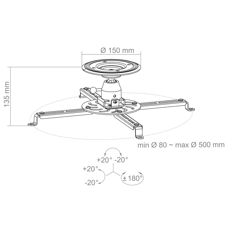 Монтажни рамена с променлива дължина Ø мин. 80 до Ø макс. 500 мм.