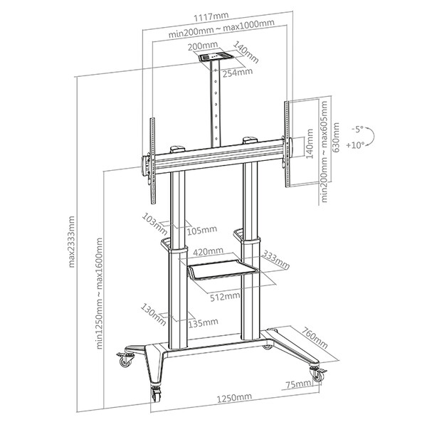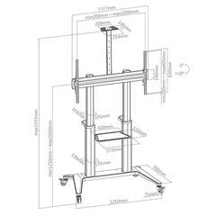 Регулиране на височината мин. 1250 – макс. 1600 мм (център на екрана / необходим инструмент)