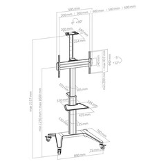 Регулиране на височината мин. 1250 – макс. 1600 мм (център на екрана / необходим инструмент)