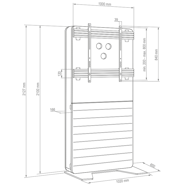 Размери В 2112 x Ш 1020 x Д 450 мм. без дисплей