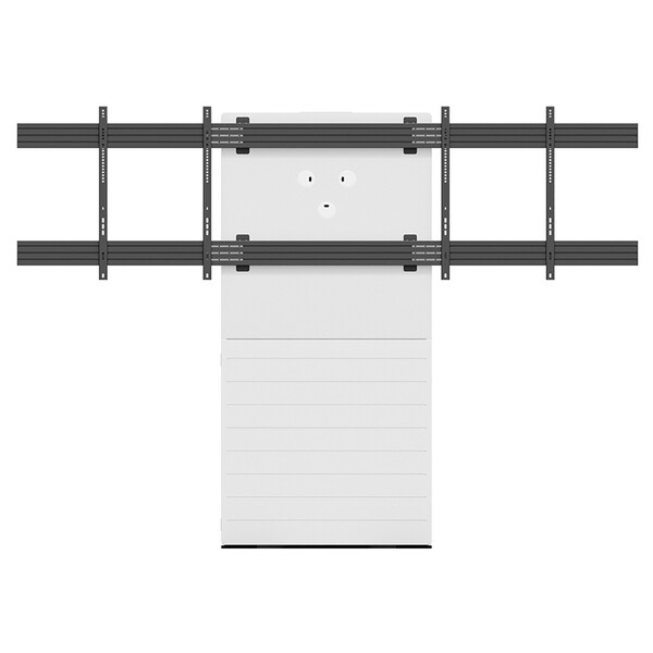 Свободностояща стойка с пространство за съхранение на AV оборудване за монтаж на два дисплея един до друг