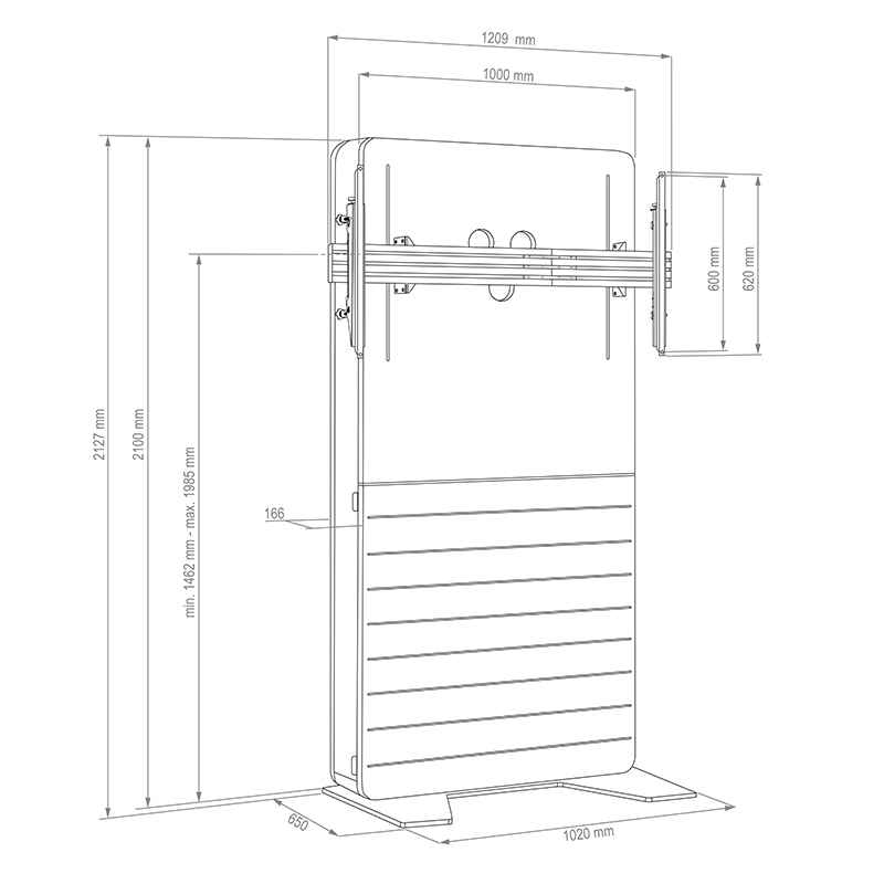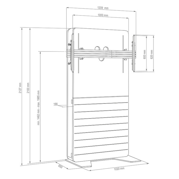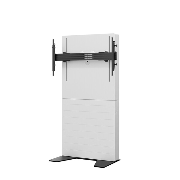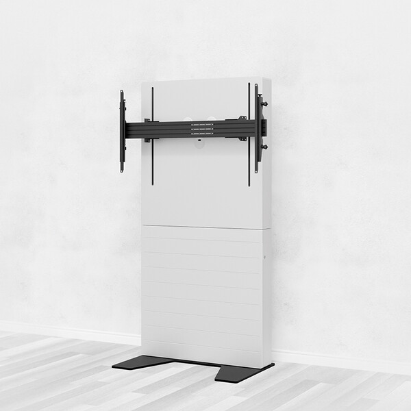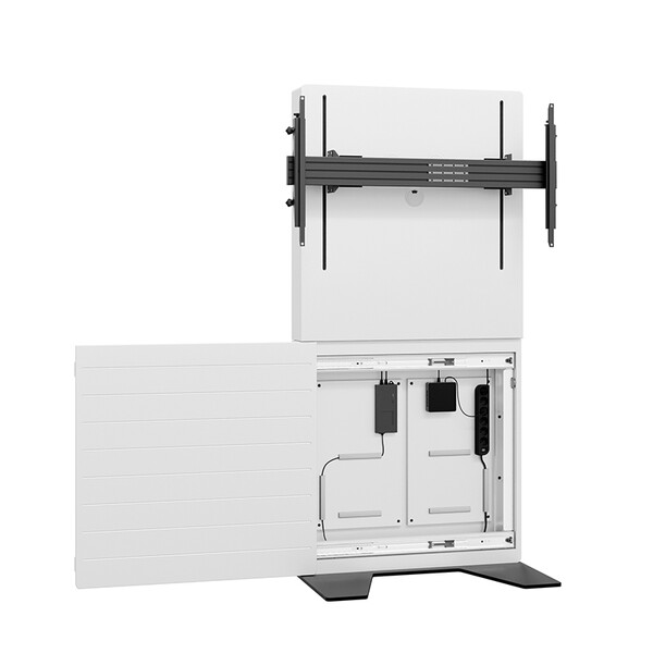 Hagor CON-Line Big FS Lift Cisco Webex Board Pro 55″ е моторизирана медйна колона произведена в Германия. Стойката е специално проектирана за дисплей Cisco Webex Board Pro 55″. Благодарение на компактния си дизайн, тя може да бъде поставена почти навсякъде в офиса. Електромоторизираното регулиране на височината се управлява чрез бутон. Разполага с четири слота за памет за запазване на индивидуални предварително зададени настройки. Подемникът има ход от 500 мм и е оборудван със защита от сблъсък и спира веднага щом срещне съпротивление. Разположението на отворите на асансьорната система е проектирано и оптимизирано за системите за съвместна работа на Cisco. Дисплеят се монтира само в пейзажен формат. AV оборудването е защитено зад предния панел с плъзгаща се врата с плавно затваряне. Подвижният AV монтажен панел (2 бр.) прави монтажа бърз и лесен. Прибираща се защитна ключалка отстрани на корпуса осигурява допълнителна сигурност. Възможни са и други цветове и декоративни варианти като допълнителна опция.
