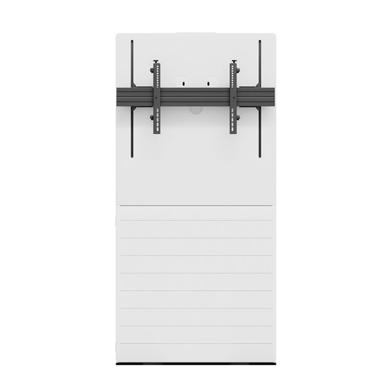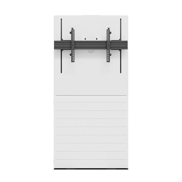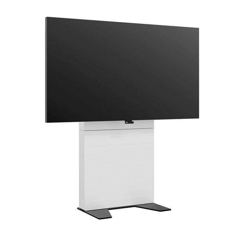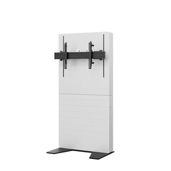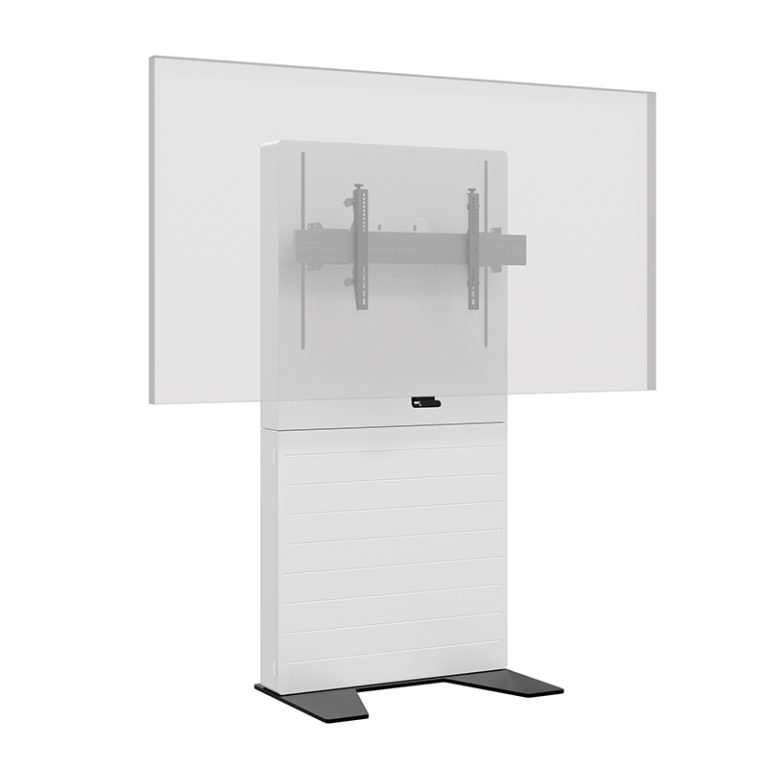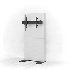 Моторизирана подова стойка с пространство за съхранение на AV оборудване.