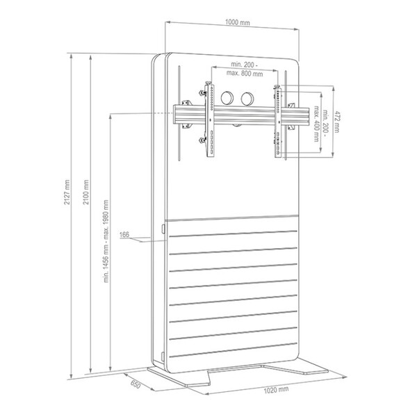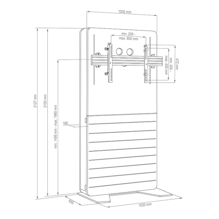 Специални характеристики: преден капак с плъзгаща се врата с плавно затваряне, AV аксесоарите са защитени от неоторизиран достъп вътре в корпуса на стойката, лесен монтаж благодарение на подвижния AV монтажен панел (2 бр.), прибираща се защитна ключалка отстрани на корпуса, електромоторизирано регулиране на височината с ход 500 мм, защита от сблъсък – повдигането спира при съпротивление, у правление с бутон с 4 слота за памет за индивидуални предварително зададени настройки за височина, защитена от накланяне основна плоча