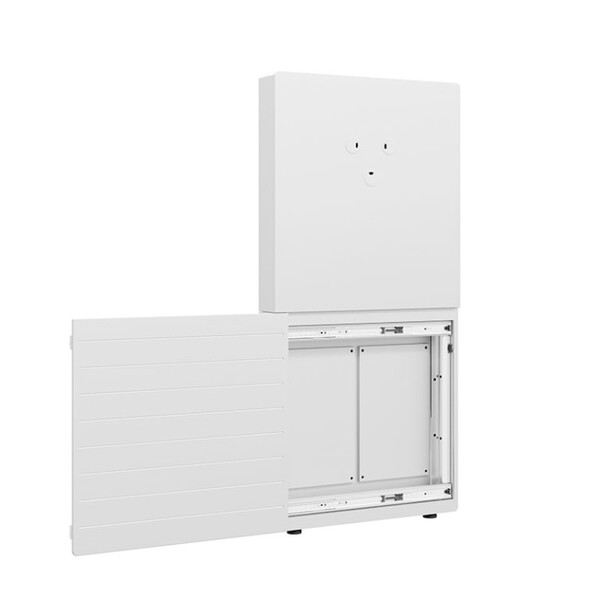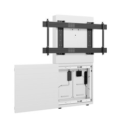 Hagor CON-Line Big W Cisco Webex Board Pro 75″ е медйна колона за монтаж на под към стена немско производство. Стойката е специално проектирана за дисплей Cisco Webex Board Pro 75″. Разположението на отворите в системата е проектирано и оптимизирано за модела на дисплея. Заключващите винтове на стойката предпазват дисплея от откачане и падане. Cisco Webex Board Pro 75″ може да се монтира само в пейзажен формат. Монтажът на пода към стената спестява ценно място в офисното пространство. Нивелиращите крачета, монтирани под корпуса, осигуряват възможност за допълнителна настройка. AV оборудването е защитено зад предния панел с плъзгаща се врата с плавно затваряне. Подвижният AV монтажен панел (2 бр.) прави монтажа бърз и лесен. Прибираща се защитна ключалка отстрани на корпуса осигурява допълнителна сигурност. Възможни са и други цветове и декоративни варианти като допълнителна опция.