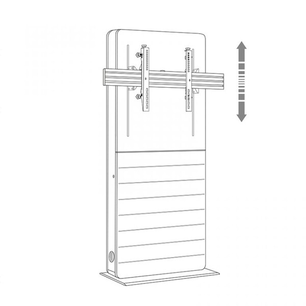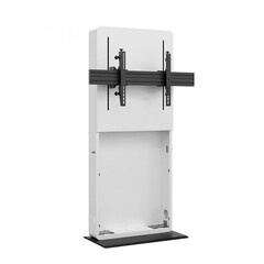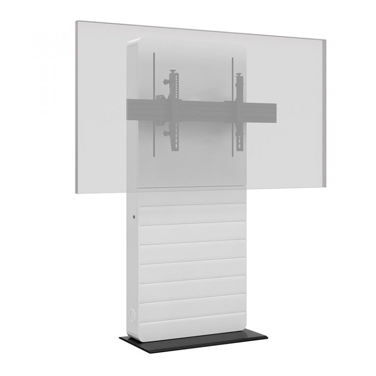 Моторизирана подова стойка с пространство за съхранение на AV оборудване.