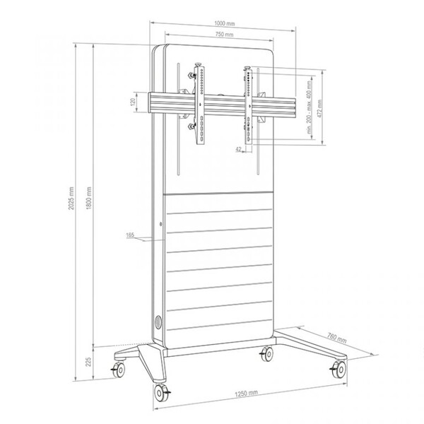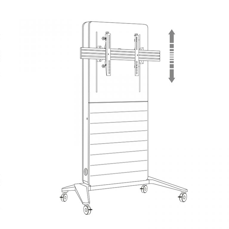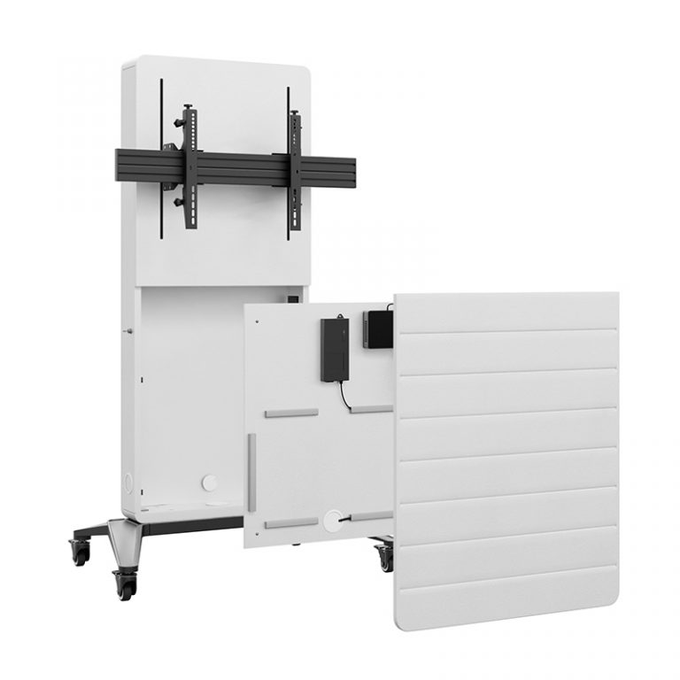 Специални характеристики: Електромоторизирано регулиране на височината, защита от сблъсък – повдигането спира при съпротивление, ход на височината 500 мм, 4 слота за памет за запазване на индивидуални настройки, преден панел с магнитно заключване, колелца със заключваща спирачка, вентилационни решетки в корпуса, AV аксесоарите са защитени от неоторизиран достъп вътре в корпуса, лесен монтаж благодарение на подвижната AV монтажна плоча, фино регулируеми VESA рамена с регулиране на дълбочината/височината/компенсация на нивото, прибиращи се заключващи механизми от двете страни на корпуса.