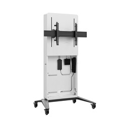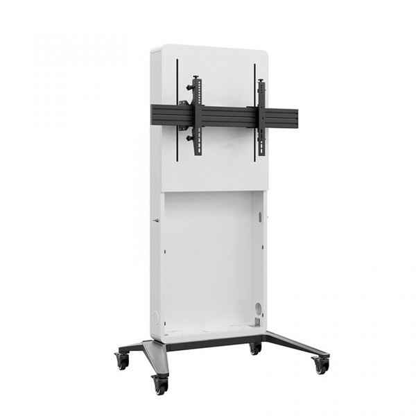 Моторизирана мобилна стойка с пространство за съхранение на AV оборудване.
