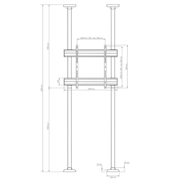Hagor CPS Floor- Ceiling single е система за фиксиран монтаж на под/таван произведена в Германия. Системата е подходяща за дисплеи с размери между 75" – 98“ или диагонал от 191 до 249 см. Дисплеят може да се монтира в пейзажна или портретна ориентация. VESA размерите са мин. 200 x 200 до макс. 900 x 800 / 800 x 900 мм. VESA стойката може да се накланя и от -5° до +15°. Височината на стойката може да се регулира променливо и да се завърта на 360°, което осигурява оптимално подравняване (необходим е инструмент). Общата височина на системата е 3000 мм. При необходимост тя може да бъде скъсена. Кабелите са прокарани вътрешно. Кабелните изводи на подходящи места осигуряват удобство при работа. Повърхностите на компонентите са защитени с устойчиво на удар и надраскване прахово покритие в черно. Максималното натоварване е 75 кг. Цялостното решение може да се комбинира и разширява с компонентите от серията comPROnents® без ограничения и по този начин да предлага допълнителни възможности за приложение.