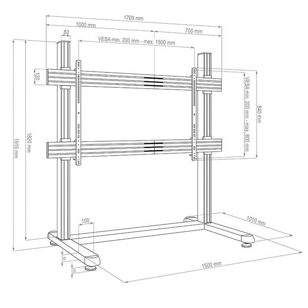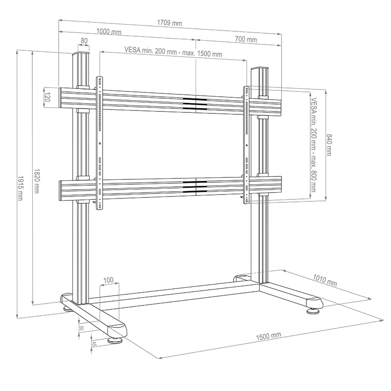 VESA мин. 200 x 200 мм – макс. 1500 x 800 мм
