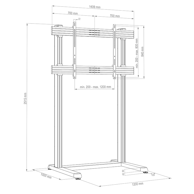 VESA мин. 200 x 200 мм – макс. 1200 x 800 мм