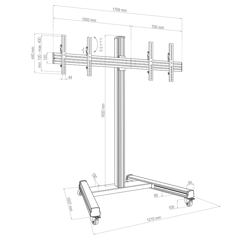 Регулируема височина на VESA държач чрез профилна система