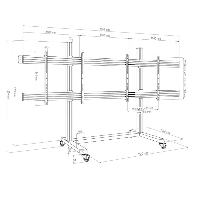 VESA хоризонтално мин. 400 – макс. 900 мм,вертикално мин. 400 – макс. 800 мм