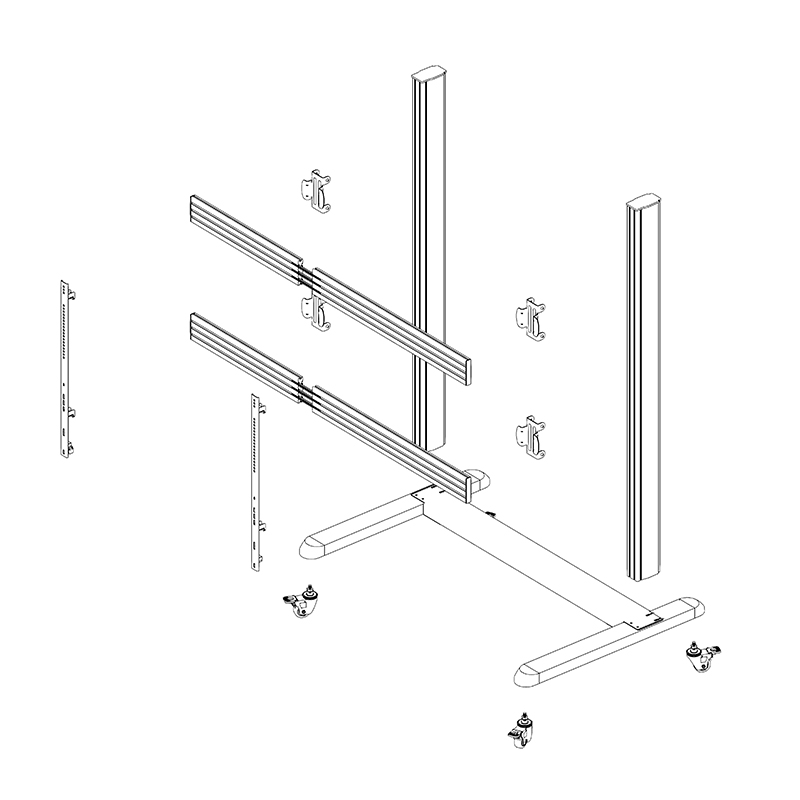 Hagor CPS Mobile Stand Single 86 – 110″ е мобилна стойка за тежък дисплей произведена в Германия. Подходяща е за дисплеи с размер на диагонала от 86" до 110“ или от 218см. до 279 см.VESA стандартът покрива от мин. 200 x 200 мм до макс. 1500 x 800 мм. Колелцата осигуряват необходимата мобилност и имат заключващи се спирачки, което позволява сигурното им фиксиране на желаното място. Релсите са регулируеми по височина по протежение на алуминиевите колони и по този начин предлагат гъвкави опции за монтаж, адаптирани към съответната ситуация в помещението. Алуминиевите колони и релси могат да бъдат скъсени, ако е необходимо. Кабелите се прокарват по задната част на релсите и колоните с помощта на кабелни скоби и по този начин остават скрити от погледа. Повърхностите на отделните компоненти са защитени с прахово покритие без разтворители, устойчиво на удар и надраскване. Максималното натоварване е 130 кг.