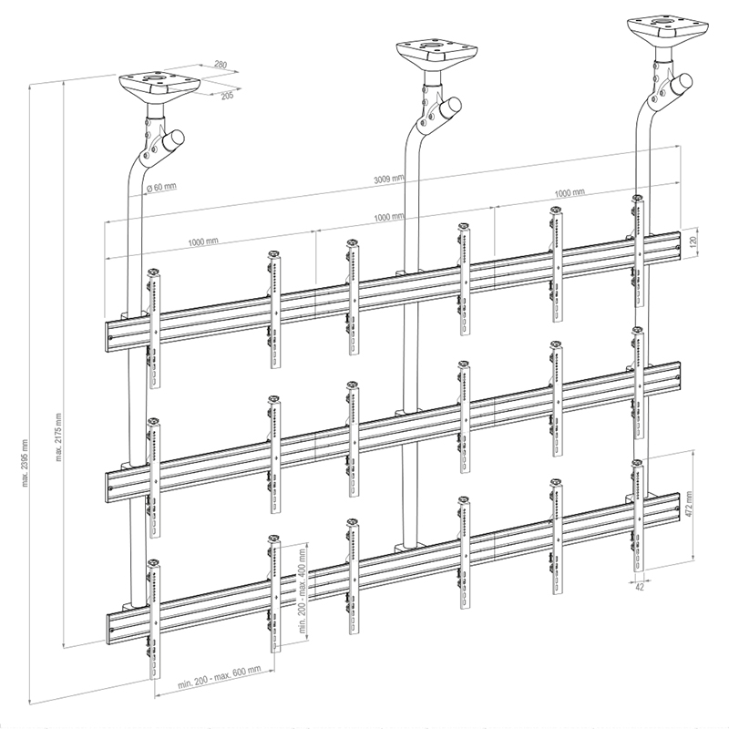 Цялостно решение за таванен монтаж на LED стена 3х3