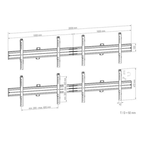 Hagor CPS Videowall W2x2L е произведена в Германия стойка за LED стена. Hagor CPS Videowall W2x2L е част от серията цялостни решения comPROnents®. Решението за стенен монтаж е за LED панели с размер от 46" до 55" или диагонал от 117 см. до 140 см. Чрез тази стойка е възможно да се създаде LED стена разделена на 2 × 2 хоризонтални панели. Отделните държачи на панелите предлагат възможност за регулиране на нивото в дълбочина и височина чрез отделно фино регулиране. Включените VESA стойки могат да бъдат монтирани с максимум 600 x 400 мм. По ширина LED панелите могат лесно да се местят и регулират по алуминиевите релси. Общата ширина е 2009 мм; ако е необходимо, дължината на релсите може да се скъси. Окабеляването е организирано и здраво закрепено заедно чрез кабелни скоби по протежение на релсите. Максималното натоварване е 40 кг / на кабинет. Повърхността на стойката е защитена от надраскване и удар. Цялостните решения могат да се комбинират и разширяват с компонентите от серията comPROnents® без ограничения и по този начин предлагат допълнителни възможности за приложение.
