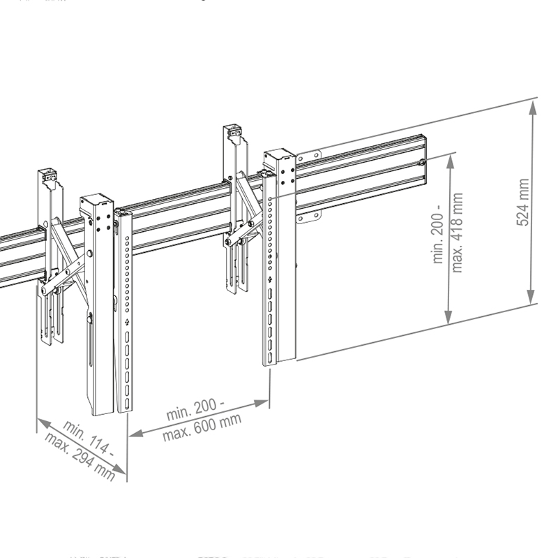 Hagor CPS Videowall W3x3L 46" – 50″ Pop-Out е произведена в Германия стойка за видео стена. Стойката позволява създаване на видео стена от 3х3 панела с големина на диагонала от 46" до 50". решението предлага функцията Pop-Out, което е от изключетелно удобство за обслужване на видео панелите. Стойката предлагаа възможност за регулиране на височината и наклона, както и компенсация на нивото. Благодарение на механизма за изскачане, системата осигурява добра достъпност за обслужване по всяко време, дори докато е в експлоатация. Ширината на стойките за отделните видео панели може да се регулира много лесно чрез преместване по алуминиевата релса. VESA стойките могат да бъдат монтирани с минимален размер от 200 x 200 мм до максимум 600 x 400 мм. Общата ширина е 3009 мм, дължината на релсата може да се скъси, ако е необходимо. Окабеляването е организирано и здраво закрепено заедно чрез кабелни скоби по протежение на релсите. Максималното натоварване е 40 кг / на видео панел. Повърхностите на компонентите са покрити с прахово покритие в черно, без разтворители, устойчиво на удар и надраскване.
