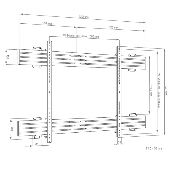 VESA мин. 400 x 400 мм – макс. 1000 x 800 мм