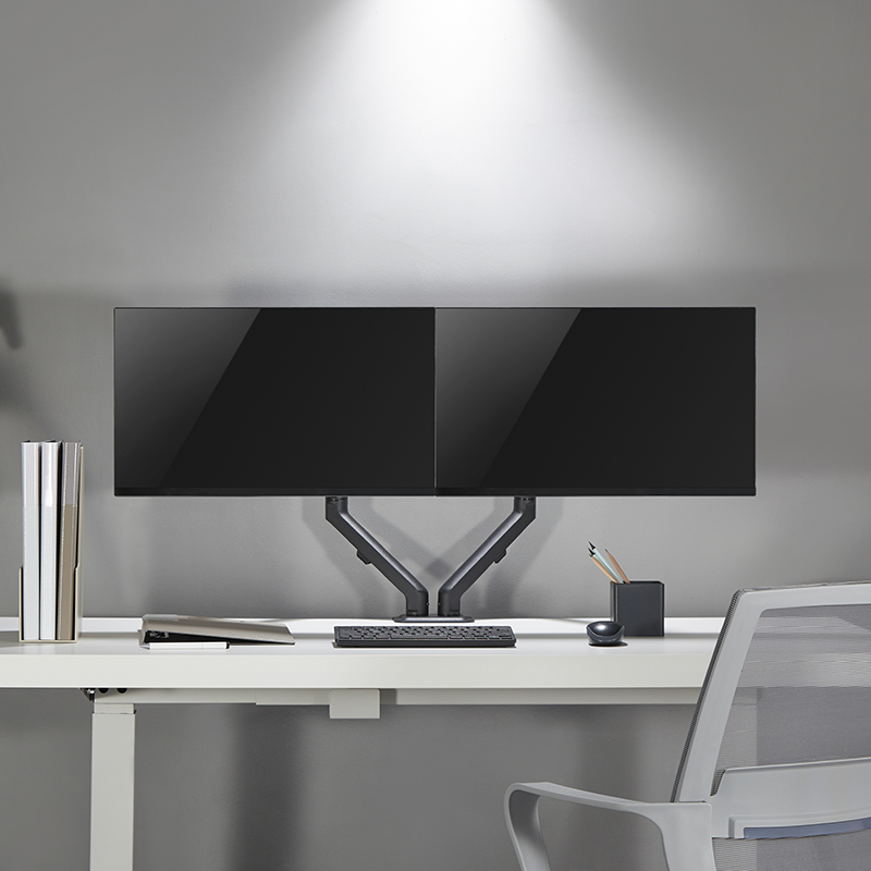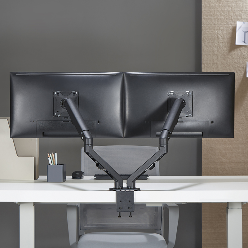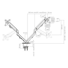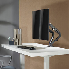 Специални характеристики: пълно завъртане на монитора от пейзаж в портрет, скрито прокарване на кабела по рамената, фиксиране чрез скоби, фиксиран монтаж без пробиване,