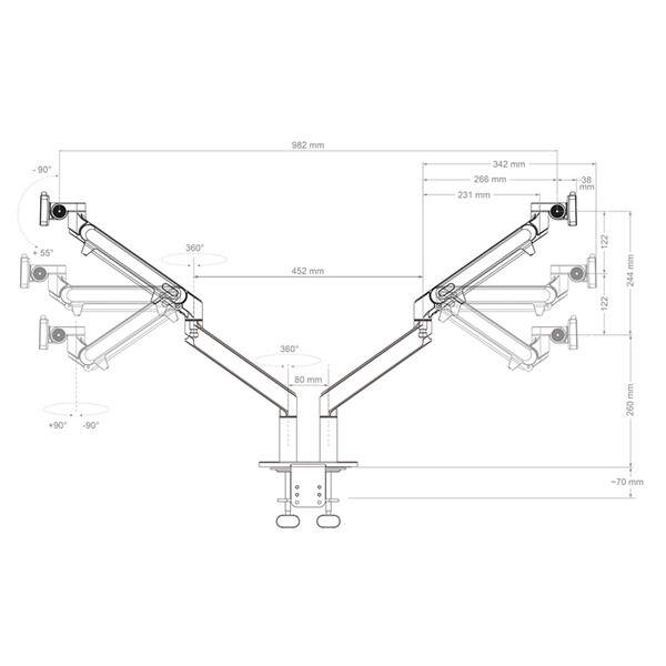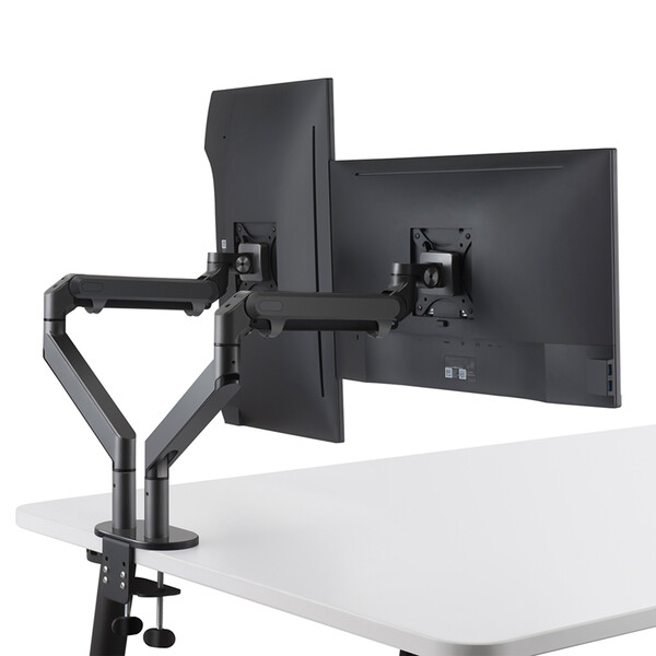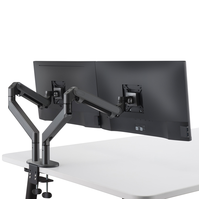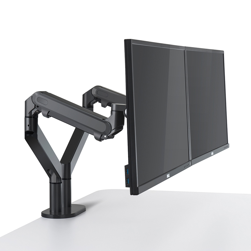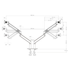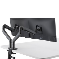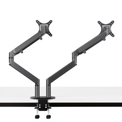 Специални характеристики: промяна на ориентацията на монитора по всяко време, скрито прокарване на кабелите по рамената, фиксиране чрез скоби, монтаж на плот със скоби или винтове, система от газови пружини