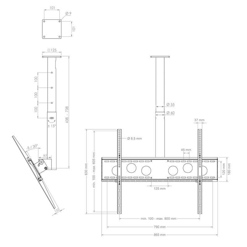 VESA мин. 100 x 100 мм – макс. 800 x 600 мм