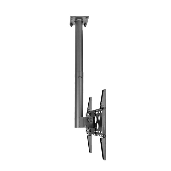 Hagor HA DH 400 – 700 L е стойка за таванен монтаж на дисплеи произведена н Германия. Проектирана е за дисплеи от 55“ до 75“ с диагонал на екрана от 140 см. до 191 см. Инсталацията може да се извърши по избор в пейзажен или портретен формат. VESA стандартът е от 100 x 100 мм до макс имално 400 x 400 мм. Ъгълът на наклон може да се регулира между -5° и +30° без инструменти, като се използват въртящите се странични дръжки. Благодарение на продълговатите отвори в страни в долния сегмент на тръбата, стойката може да се завърта на ±15° с инструменти. Това означава, че дори малки разлики, например при неправилно пробиване, могат да бъдат компенсирани. Разстоянието до тавана може да се променя на стъпки от 100 мм. между минимум 438 мм. и максимум 738 мм. от центъра на дисплея. Кабелите се прокарват вътрешно, скрити от погледа и неоторизиран достъп. Повърхностите на стойка за таван Hagor HA DH 400 – 700 L е покрита с устойчиво на удар и надраскване прахово покритие в черно. Максималното натоварване е 50 кг.
