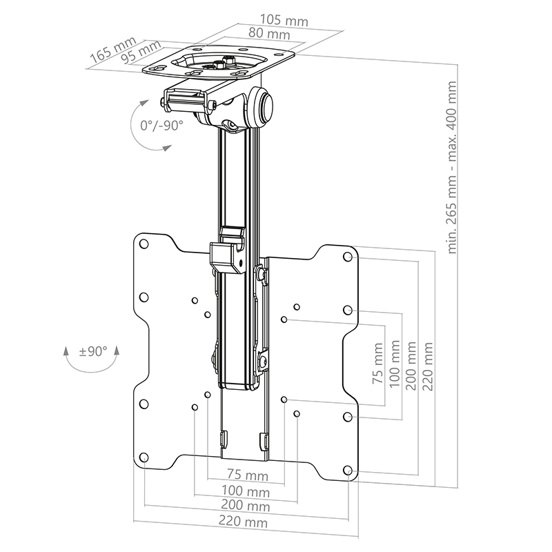 VESA 75 x 75 мм, 100 x 100 мм, 200 x 200 мм