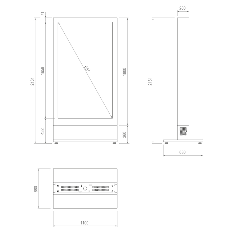 - Тотемна стойка за вътрешна инсталация на дисплей 65" в портретна ориентация.