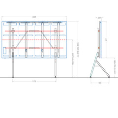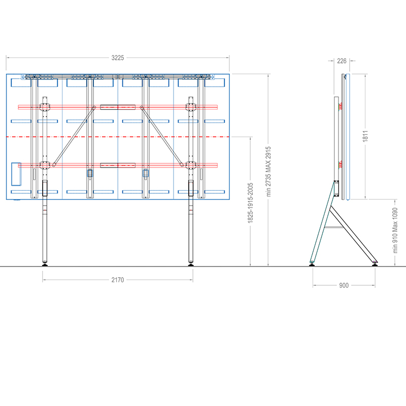 Размер на стойката Ш 3225 x В мин. 2735 / макс. 2915 x Д 900 мм
