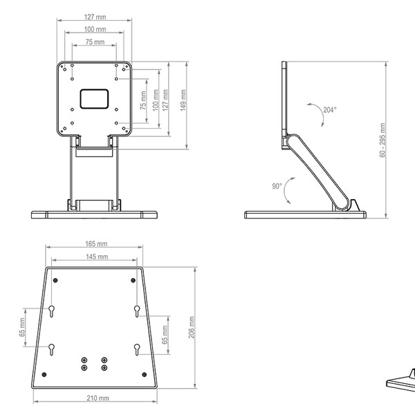 Hagor HP POS е произведена в Германия настолна стойка за дисплей от 13" до 24". Стойката може да бъде фиксирана към настолна повърхност. Подходяща е за дисплеи с размер на диоганала от 33 см. до 61 см. VESA стандарта е 75 x 75 мм и 100 x 100 мм. Hagor HP POS има възможност за сгъване на две точки, което я прави изключително функционална. Височината на позициониране на дисплея може да се регулира между от 60 мм до 295 мм. Стойката е изработена от черна пластмаса, с максимално натоварване до 6,5 кг. За дисплеи, по-големи от 19 инча, препоръчваме фиксиран монтаж към маса, тъй като има риск от преобръщане.