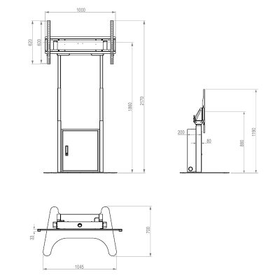 Произведената в Германия подова стойка HP Twin Lift FS-W е с повдигаща система за дисплеи с размер от 55" до 86" или диагонал от 140 до 218 см. Дисплеят може да е в пейзажна или портретна ориентация. За портретен монтаж стойката покрива стандарта VESA до макс. 900 x 600 мм. Височината на дисплея може да се регулира електромоторно. Ходът от 980 мм позволява оптимално регулиране на височината. Повдигащата система е снабдена и със защита от сблъсък, която незабавно спира движението на екрана веднага щом се срещне съпротивление. Благодарение на асиметрично оформената основа, е възможно системата да се позиционира близо до стена. Размерите на основата са Ш 1045 x Д 700 м. Подова моторизирана стойка Hagor HP Twin Lift FS-W има вграден медиен шкаф, който е заключващ се и надеждно защитава съхраняваното там AV оборудване от неоторизиран достъп. Благодарение на максималното натоварване от 120 кг, повдигащата система е подходяща и за големи, тежки дисплеи. Възможно е добавяне на стойка за камера с регулиране на височината, както и поставка за лаптоп HP Twin Lift.