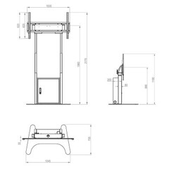 Специални характеристики: предотвратяване на сблъсък – подемникът спира при съпротивление, функция за запаметяване на височина, управление на кабелите, подова основа устойчива на накланяне, заключващ се шкаф за медии, вкл. множество щепсели и рафт за мини компютър, VESA монтаж с предпазител
