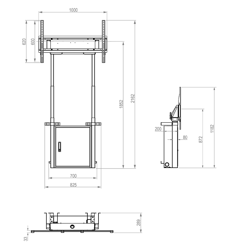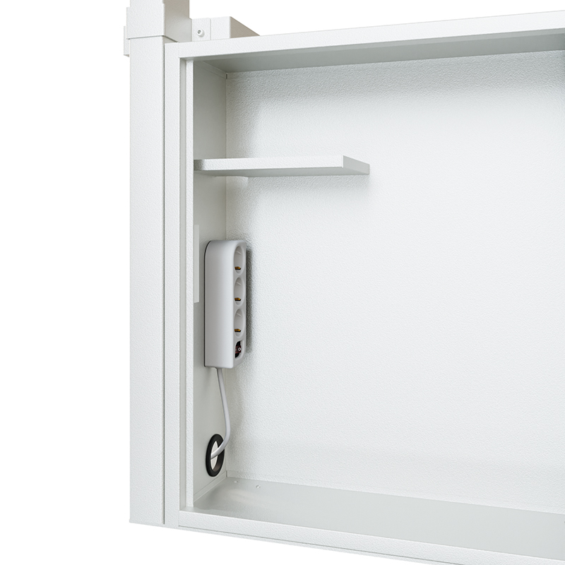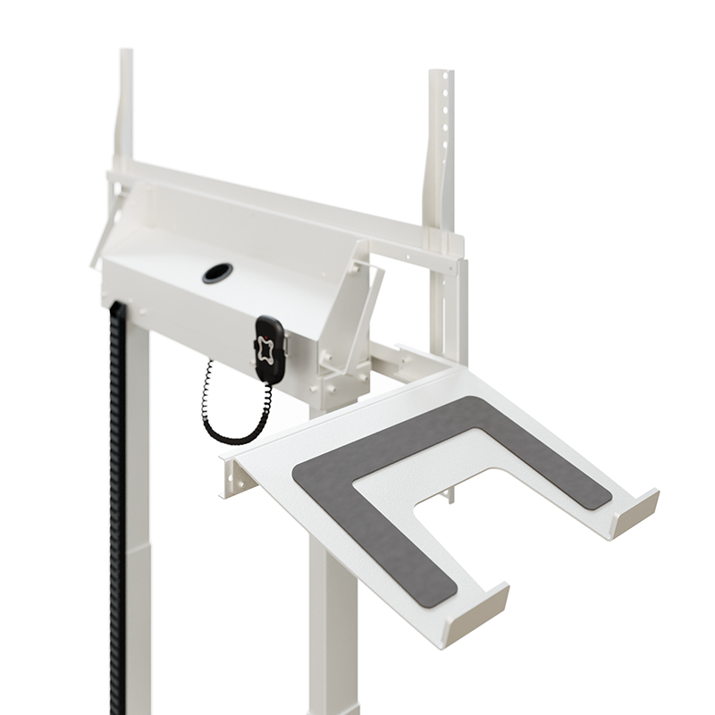 Специални характеристики: система за предотвратяване на сблъсък – асансьорът спира при съпротивление, функция за запаметяване на височина, управление на кабелите чрез верига за издърпване на кабели, пестящ място монтаж от пода до стената, заключващ се медиен шкаф, VESA монтаж с предпазител.