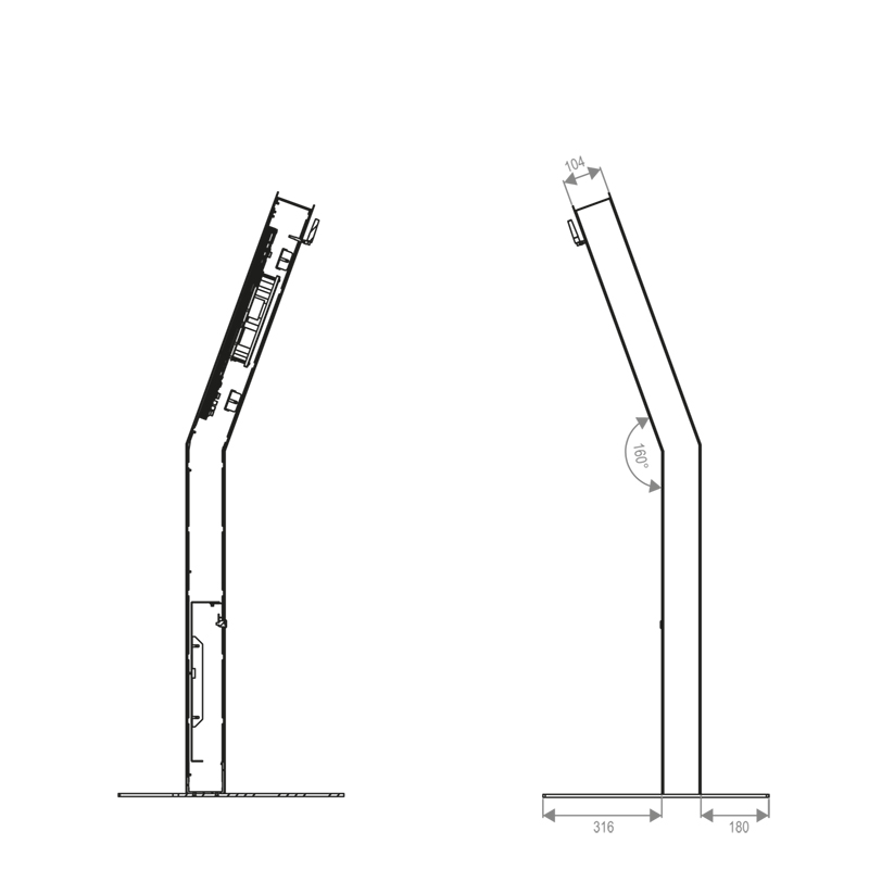 Hagor Landscape vis-it welcome 43″ е тотемна стойка проезведена в Германия. Благодарение на скосената конструкция и получения ъгъл на видимост, стойката за тотем е особено подходяща за позициониране във входната зона или за всякакъв вид сензорни приложения. Подходяща е за вграждане в нея на дисплей с размер на диагонала от 43″ или с диагона от 109см. Позиционирането на дисплея в стойката може да бъде само в пейзажна ориентация. Тотемът, който се получава като краен продукт е подходящ за позициониране вав входната зона на търговски или обществени обекти като дигитална табела, информационна точка или система за ориентация. Стойката е с дълбочина до до 68 мм, всички кабели от инсталацията остават невидими, разполага и с вграден разклонител. Стойка за тотем Hagor Landscape vis-it welcome 43″ разполага с място в заключващо се отделение за съхранение, например за мини компютър или друго оборудване, което се нуждае от защита срещу неоторизиран достъп или кражба. Стойката се предлага по избор в цветове от RAL. Активната вентилация в горната част на тотема осигурява перфектна циркулация на въздуха. По желание тотемът може да бъде оборудван със защитно стъкло пред екрана или WiFi антена.