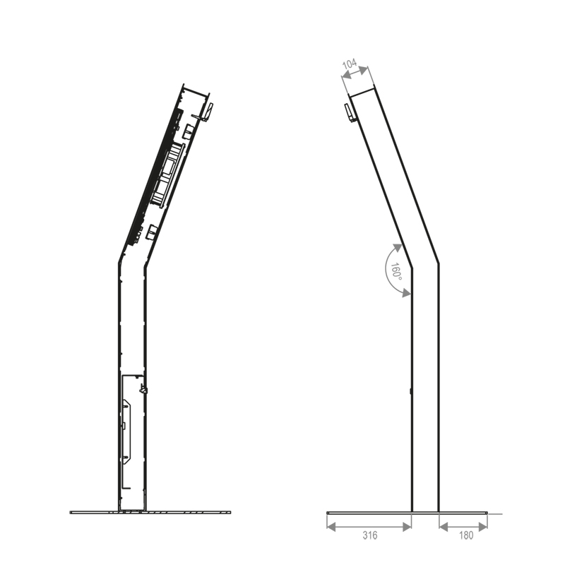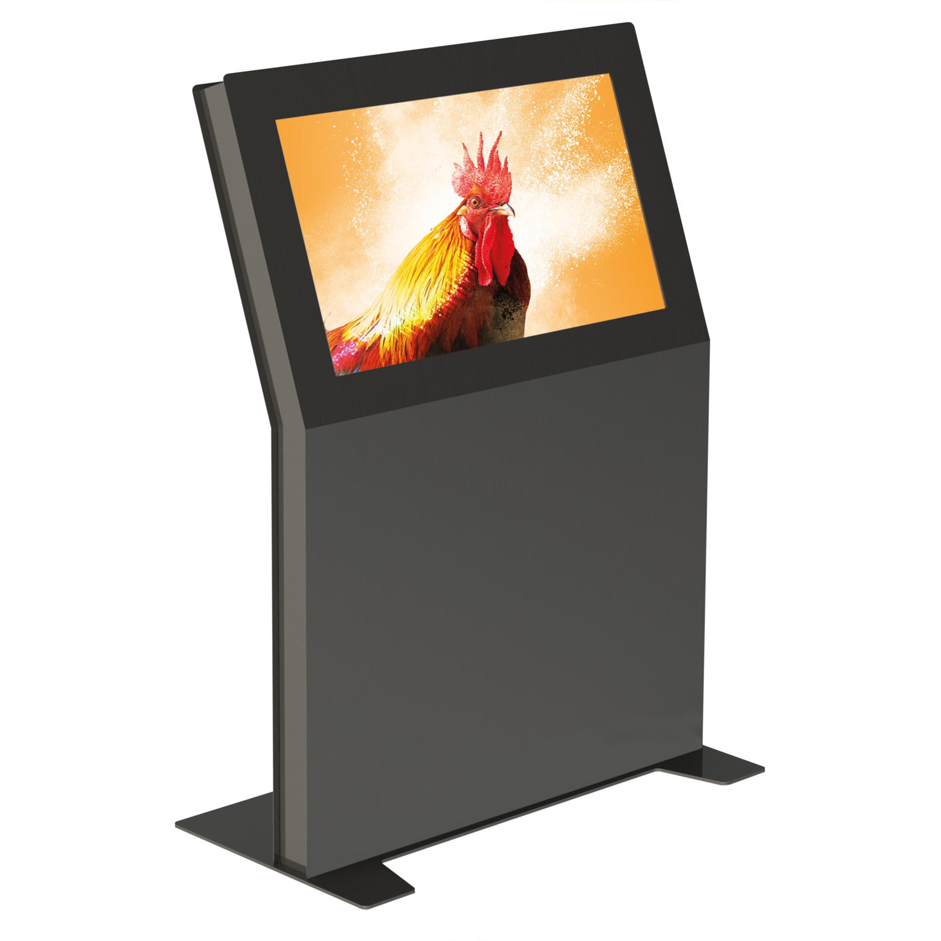 Hagor Landscape vis-it welcome 55″ е тотемна стойка проезведена в Германия. Благодарение на скосената конструкция и получения ъгъл на видимост, стойката за тотем е особено подходяща за позициониране във входната зона или за всякакъв вид сензорни приложения. Подходяща е за вграждане в нея на дисплей с размер на диагонала от 55″ или с диагона от 140см. Позиционирането на дисплея в стойката може да бъде само в пейзажна ориентация. Тотемът, който се получава като краен продукт е подходящ за позициониране вав входната зона на търговски или обществени обекти като дигитална табела, информационна точка или система за ориентация. Стойката е с дълбочина до до 68 мм, всички кабели от инсталацията остават невидими, разполага и с вграден разклонител. Стойка за тотем Hagor Landscape vis-it welcome 55″ разполага с място в заключващо се отделение за съхранение, например за мини компютър или друго оборудване, което се нуждае от защита срещу неоторизиран достъп или кражба. Стойката се предлага по избор в цветове от RAL. Активната вентилация в горната част на тотема осигурява перфектна циркулация на въздуха. По желание тотемът може да бъде оборудван със защитно стъкло пред екрана или WiFi антена.