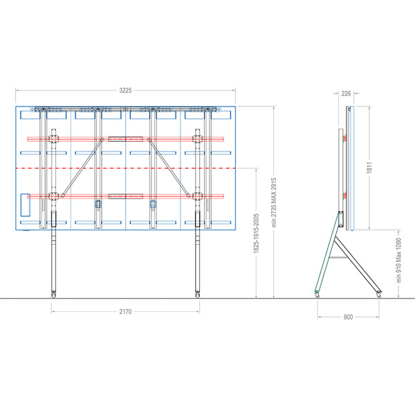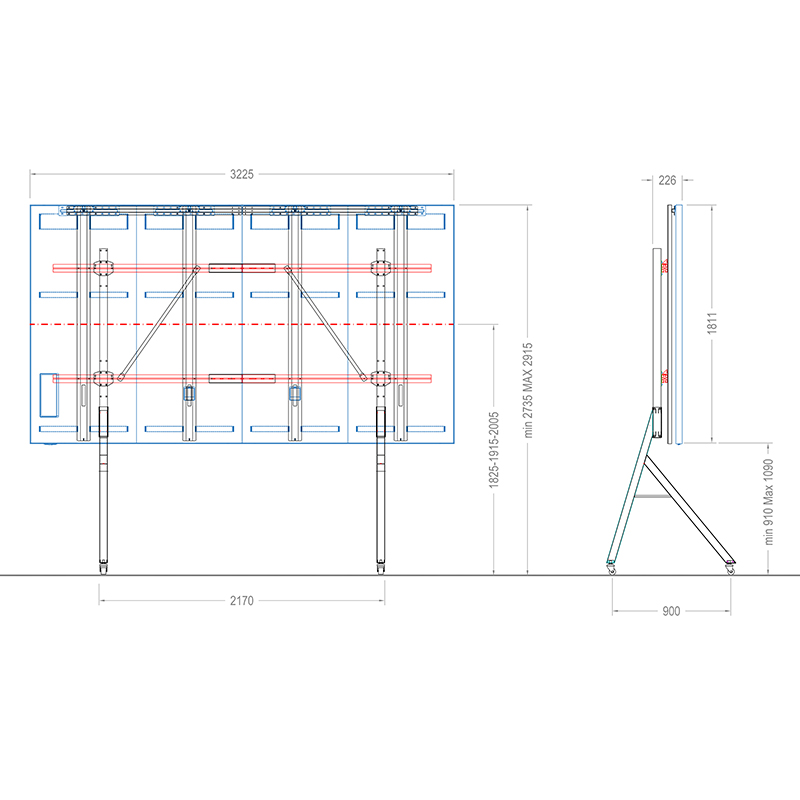 Размер на стойката Ш 3225 x В мин. 2735 / макс. 2915 x Д 900 мм