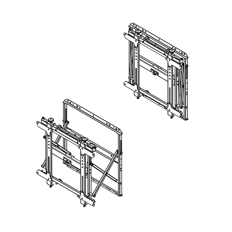 Специални характеристики: ултра плоско разстояние до стената, фино регулиране чрез включените регулиращи винтове,8-точково фино регулиране на височина, ширина и дълбочина,неограничена конфигурация на видеостена,изскачаща система за перфектен достъп за обслужване.