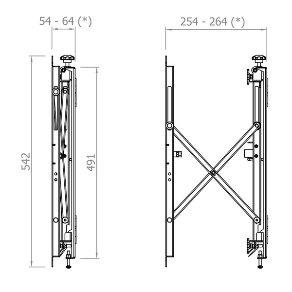 Hagor Pop-Out VWH-1-Slim е произведена в Германия стойка за монтаж на панел / кабинет за LED или видео стена. Hagor Pop-Out VWH-1-Slim е супер плоска и тънка стойка притежава изкащаща функционалност за панели и дисплеи с размер от 42" до 55″ или диагонал от 107 см. до 140 см. Конфигурацията на видеостената може да се разширява безкрайно по височина и ширина. Иновативната система за отваряне позволява лесен първоначален монтаж и осигурява добър достъп за обслужване по всяко време на работа. Разстоянието до стената е ултра плоско от 54 мин. до 264 мм макс. Благодарение на фините опции за регулиране в 8 точки по височина, ширина и дълбочина (без нужда от инструменти), позицията на екрана може да се регулира и подравни перфектно на всички нива. Hagor Pop-Out VWH-1-Slimпокрива VESA стандарт до макс. 400 x 400 мм, допълнителен адаптер за VESA 600 x 400 или 400 x 600 мм е включен в комплекта. Максималното натоварване е 35 кг.