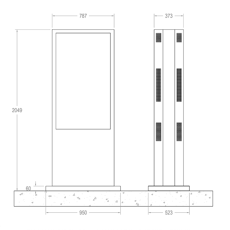 Размер на стойката: В 2049 x Ш 787 x Д 373 мм (само тотем), В 2049 x Ш 950 x Д 523 мм (с долен капак)