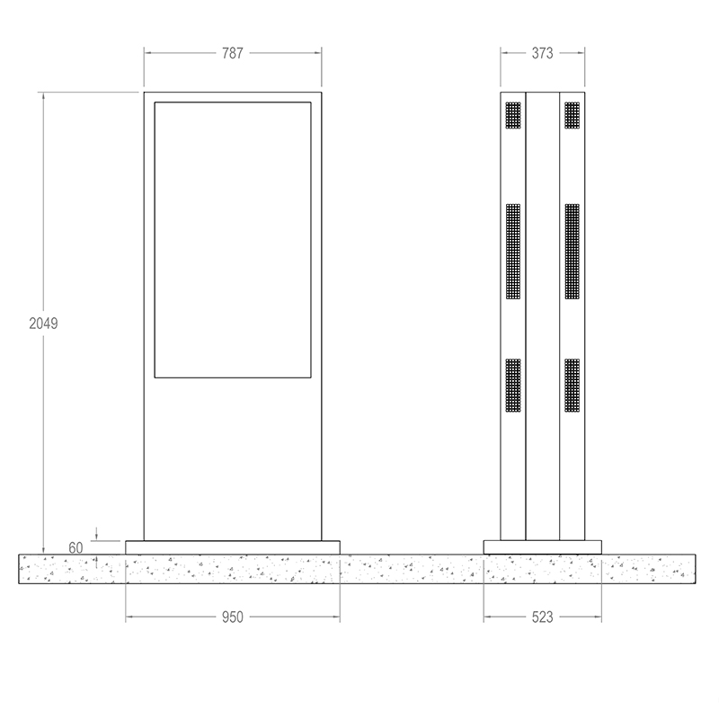 Размер на стойката: В 2049 x Ш 787 x Д 373 мм (само тотем), В 2049 x Ш 950 x Д 523 мм (с долен капак)