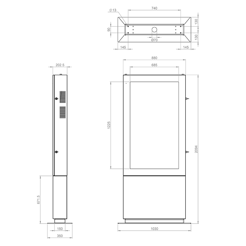 Размери: В 2094 x Ш 880 x Д 202,5 мм (Тотем), Ш 1030 x Д 350 мм (Основна плоча)